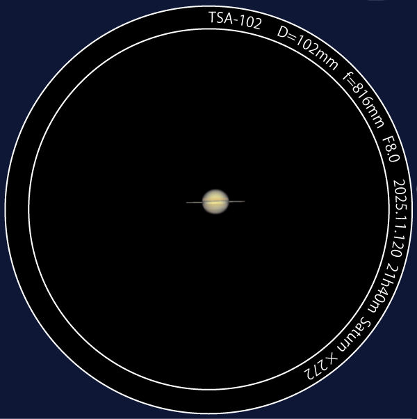 2025年秋,土星が見頃。気流が良ければ,気分で筒っぽ出動。細くなった環だけど,いつまで見えるのか興味があるところ。