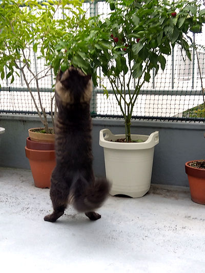ベランダに出して出してと,ほぼ毎日。一日数回のリクエスト。上の階に行く足音が聞こえたら,どんなに熟睡していても飛び起きます。